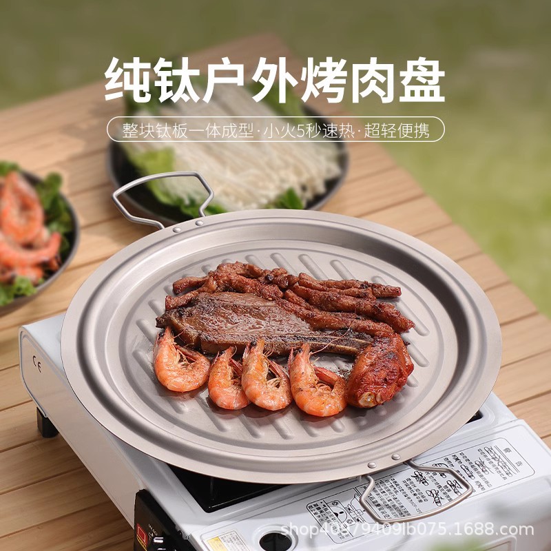 Piring barbekyu luar ruangan titanium murni, piring barbekyu, panci barbekyu paduan titanium, kompor berkemah gaya Korea, piring goreng, piring