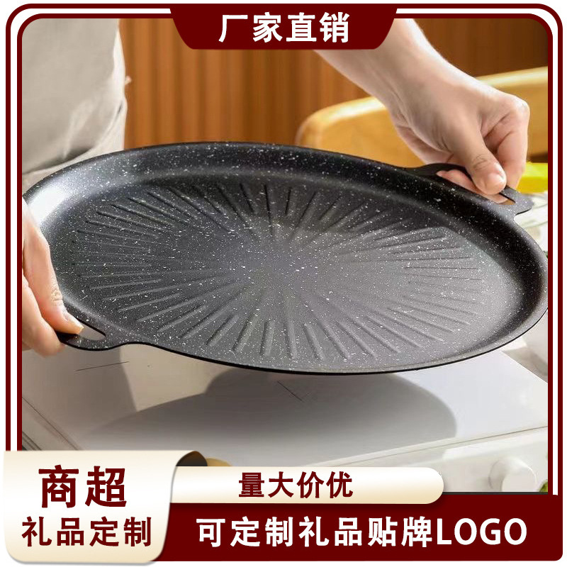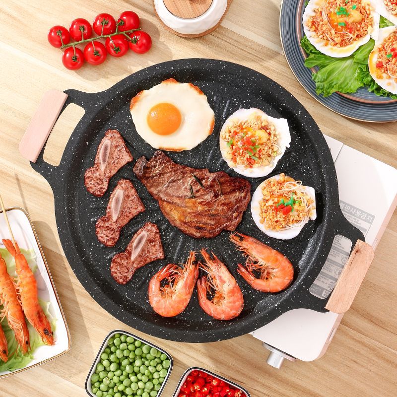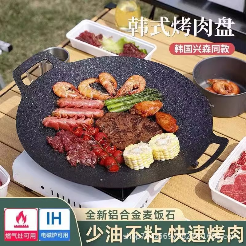 Piring Panggang Luar Ruangan Batu Gandum Gaya Korea Baki Panggang Barbekyu Tidak Lengket Rumah Tangga Kompor Induksi Piring Besi Portabel Rumah Tangga