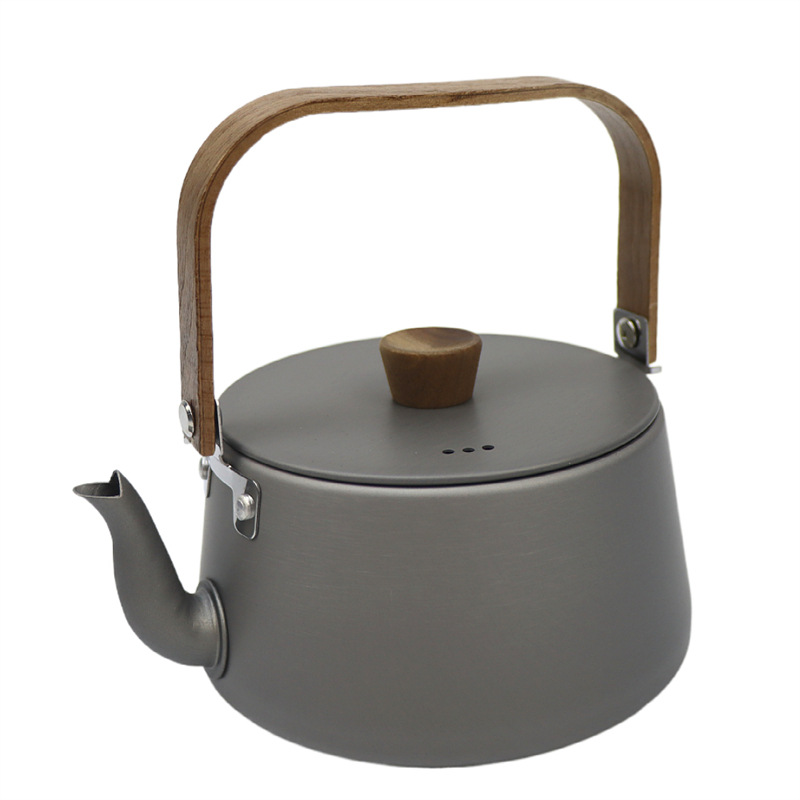Teko Teh Gagang Kayu Luar Ruangan Paduan Aluminium Teko Teh Berendam Teko Teh Berkemah Teko Teh Portabel Teko Kopi Berkemah Teko Piknik