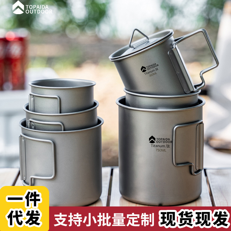 Mug Satu Lapis Titanium Murni Bisa Dilipat Cangkir Titanium Luar Ruangan Portabel Cangkir Teh Perjalanan Cangkir Kopi