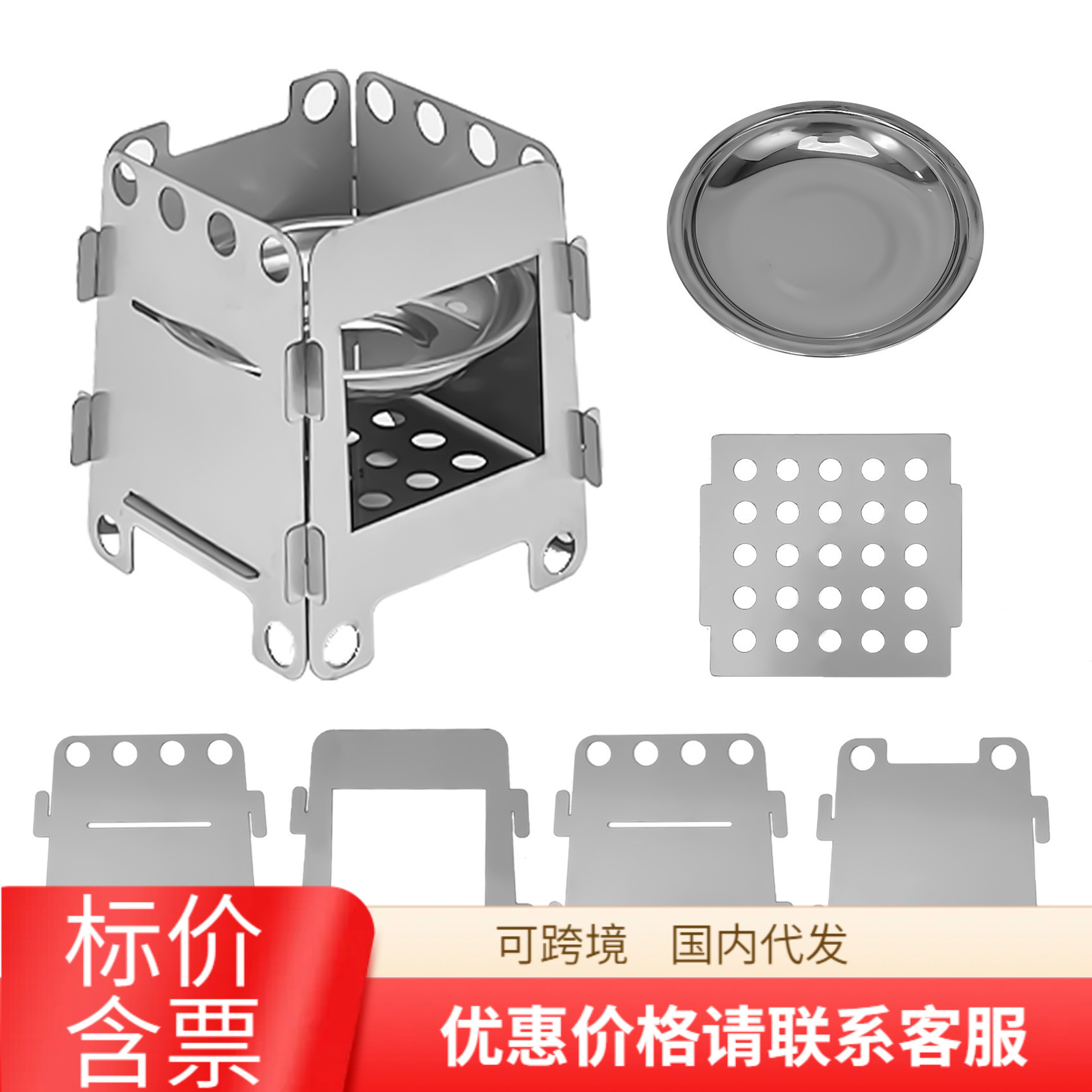 Kompor kartu baja tahan karat, baki anggur kompor barbekyu bisa dilepas untuk piknik luar ruangan, kompor pemanas portabel