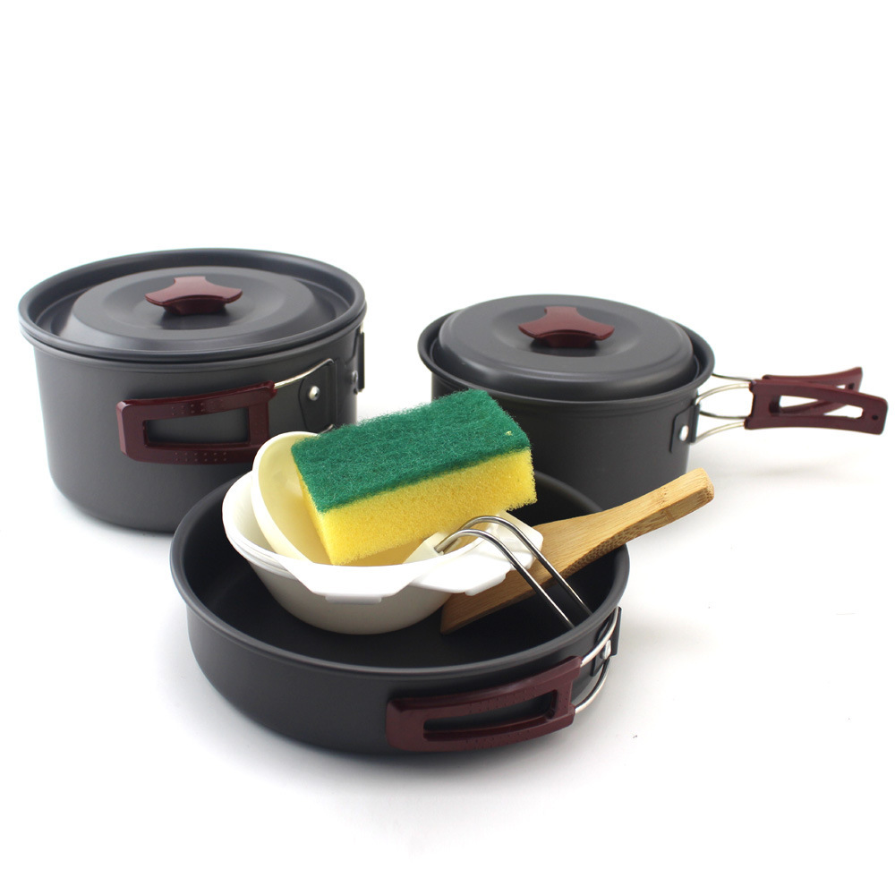 Set panci Kemah portabel, set panci kombinasi portabel, set panci luar ruangan, set panci barbekyu untuk 2-3 orang
