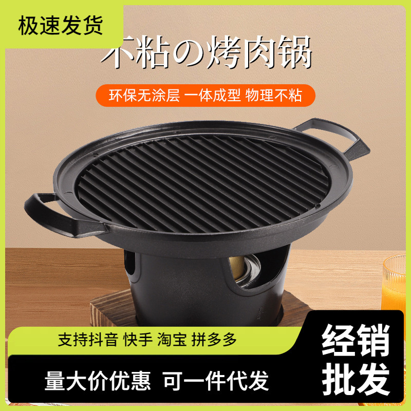 Oven barbekyu satu orang, kompor alkohol rumah tangga atas meja luar ruangan, oven barbekyu anti lengket, pelat barbekyu karbon