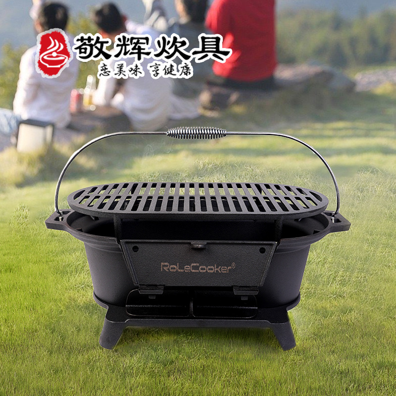 Oven barbeku luar ruangan besi cor Amerika oven barbekyu arang rumah tangga ekstra tebal untuk berkemah piknik halaman vila balkon