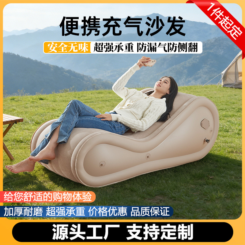 Cross-Border sofa malas lipat tunggal portabel, perjalanan luar ruangan Sofa udara tempat tidur berkemah luar ruangan tempat tidur tiup