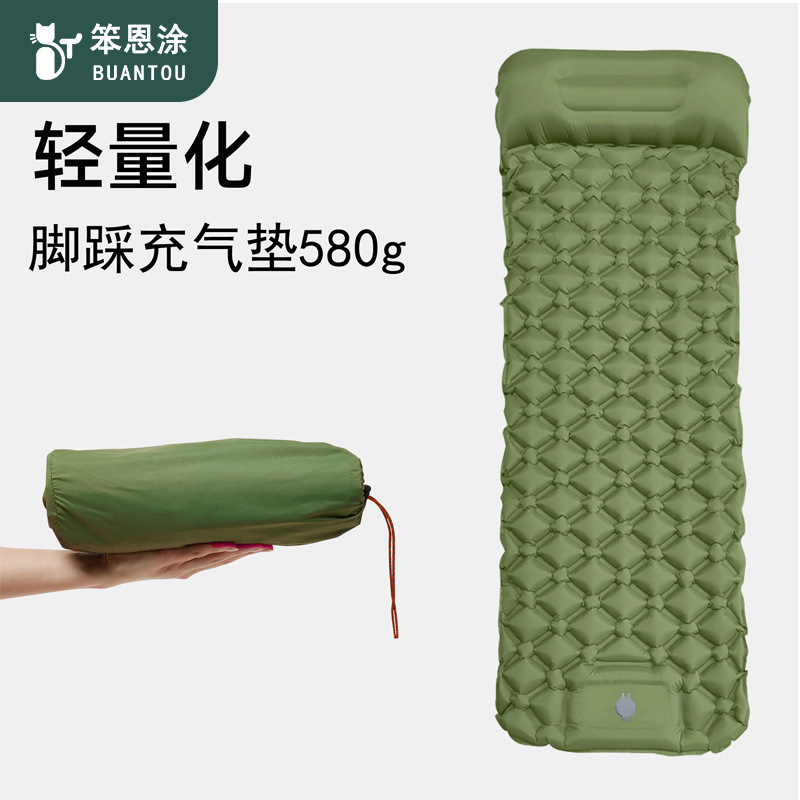 Tenda matras tiup outdoor pabrikasi, terintegrasi pompa kaki, tahan lembap, perlengkapan berkemah gunung, portabel, untuk dua orang.