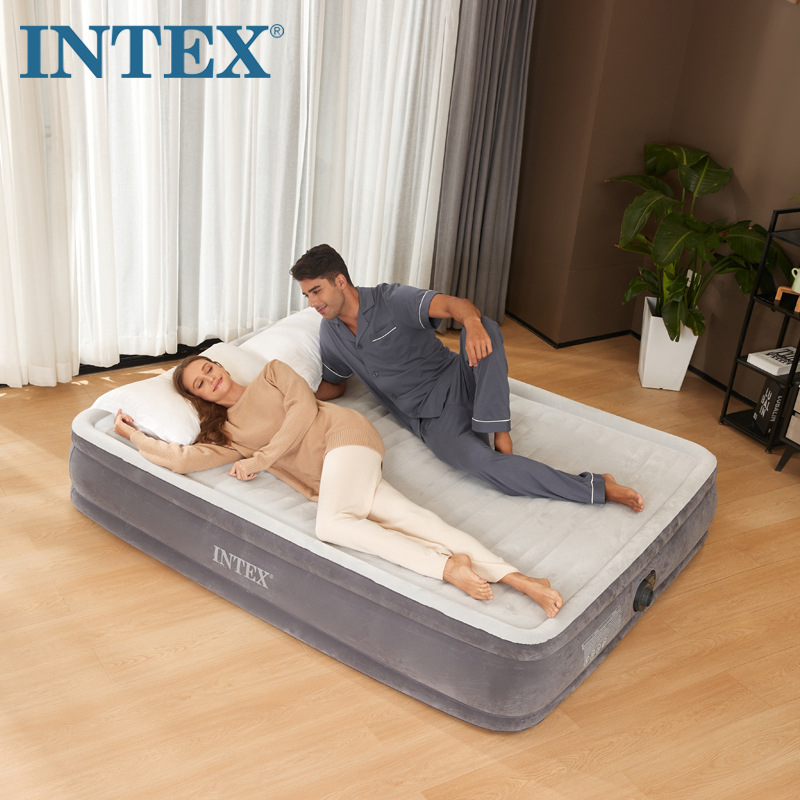 INTEX matras pompa elektrik bawaan, kasur angin tarik lapisan dobel, Ranjang angin otomatis bawaan, mewah