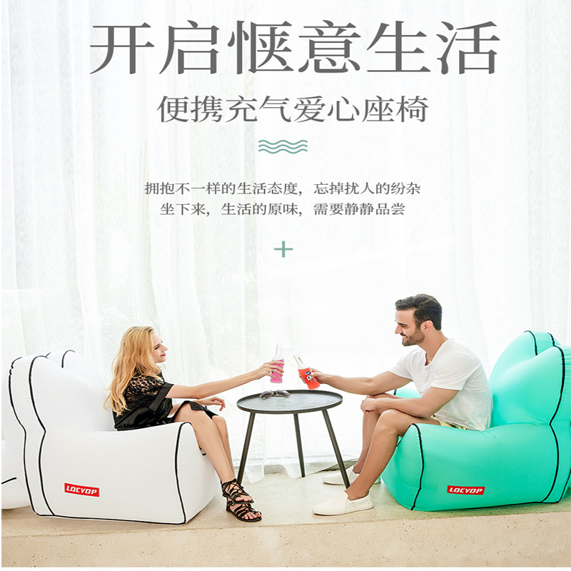 Sofa tiup luar ruangan portabel berkemah, sofa bantalan udara tunggal otomatis dapat ditiup tempat duduk malas pabrik grosir