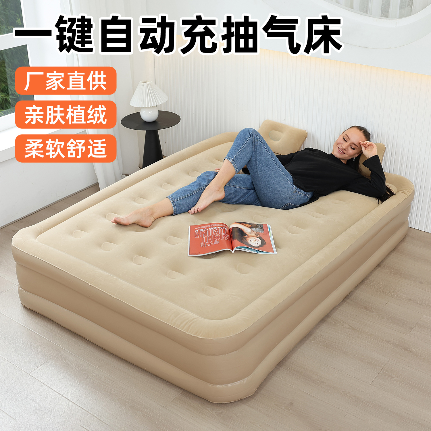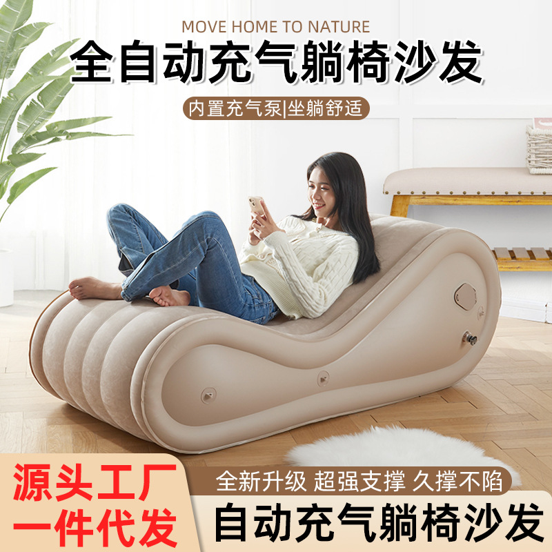 植绒充气沙发户外折叠露营家用懒人躺椅空气自动午休床野营充气式