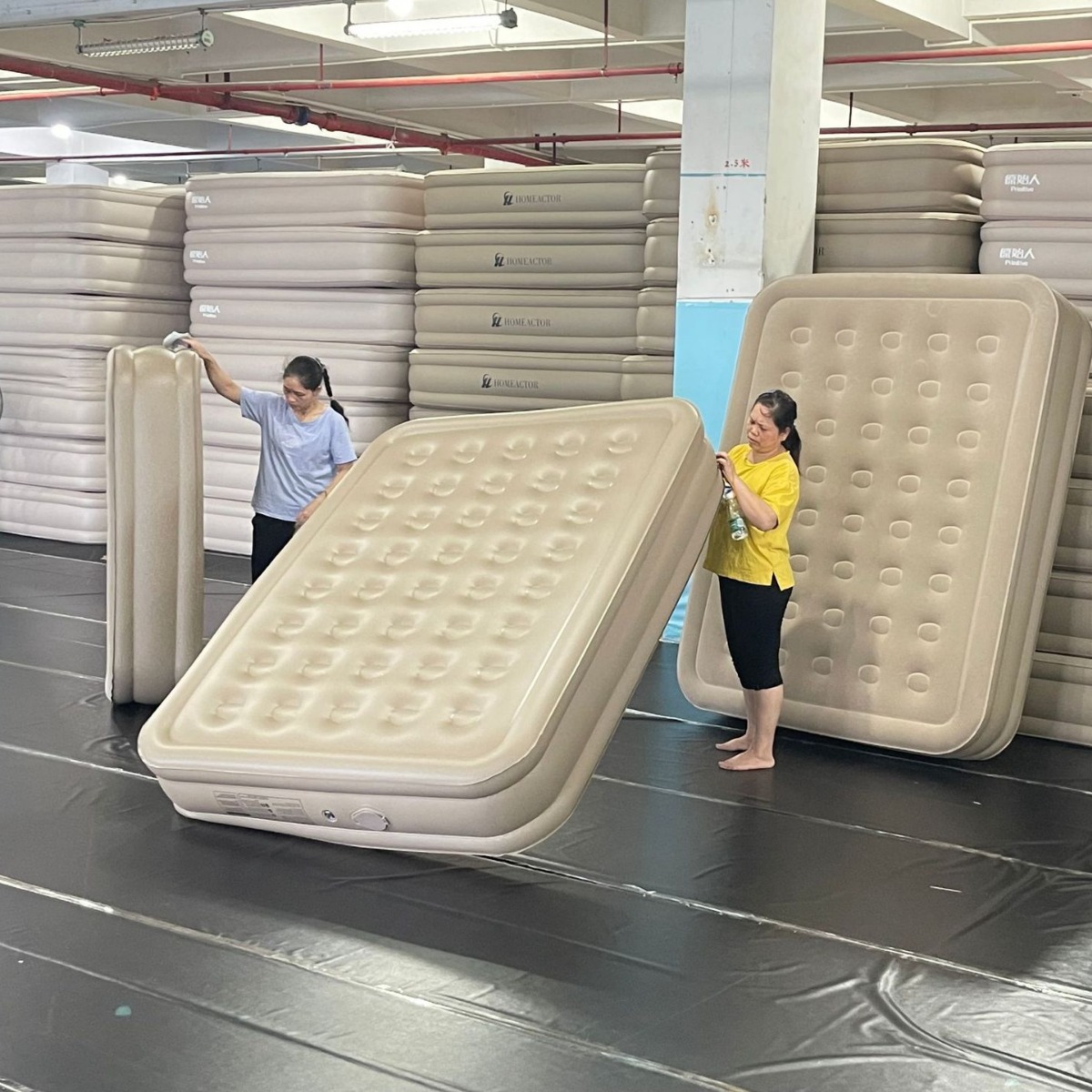 Produsen tempat tidur udara Flocking menyediakan matras udara tarik gelombang bantal bawaan ganda terlaris lintas batas