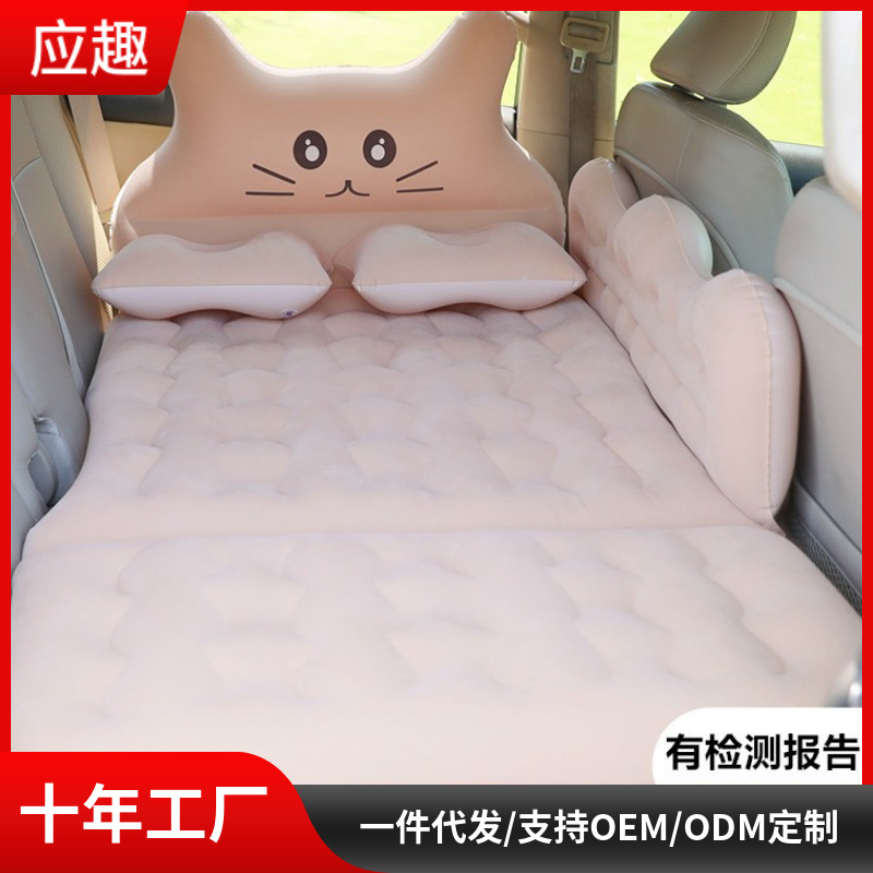 Tempat tidur tiup mobil kartun, tempat tidur flocking perjalanan luar ruangan kursi belakang mobil, bantal tidur udara Universal