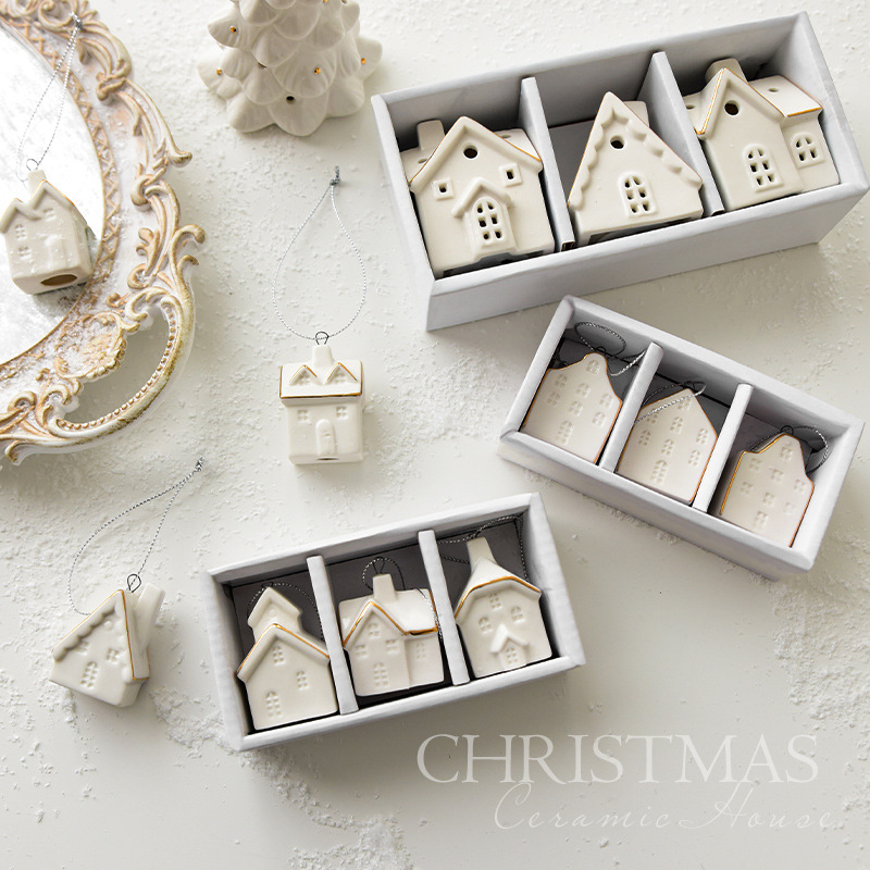NUCHI跨境圣诞节小型陶瓷房子套装圣诞装饰挂件圣诞树挂饰装饰品