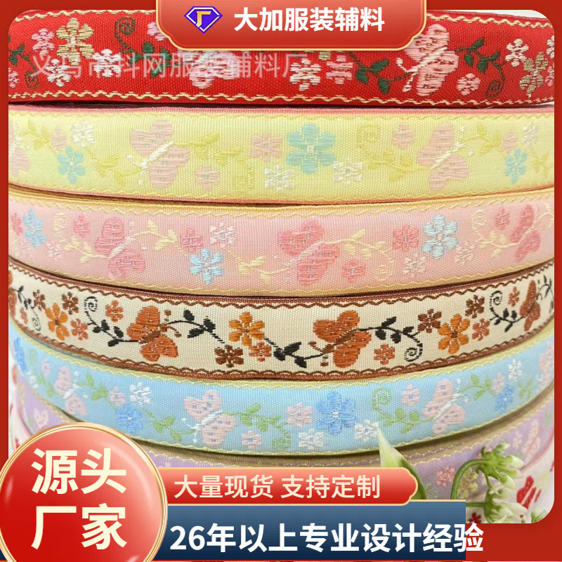 2.0厘米蝴蝶民族风刺绣提花带DIY结织带发饰发夹鞋花箱包帽服饰