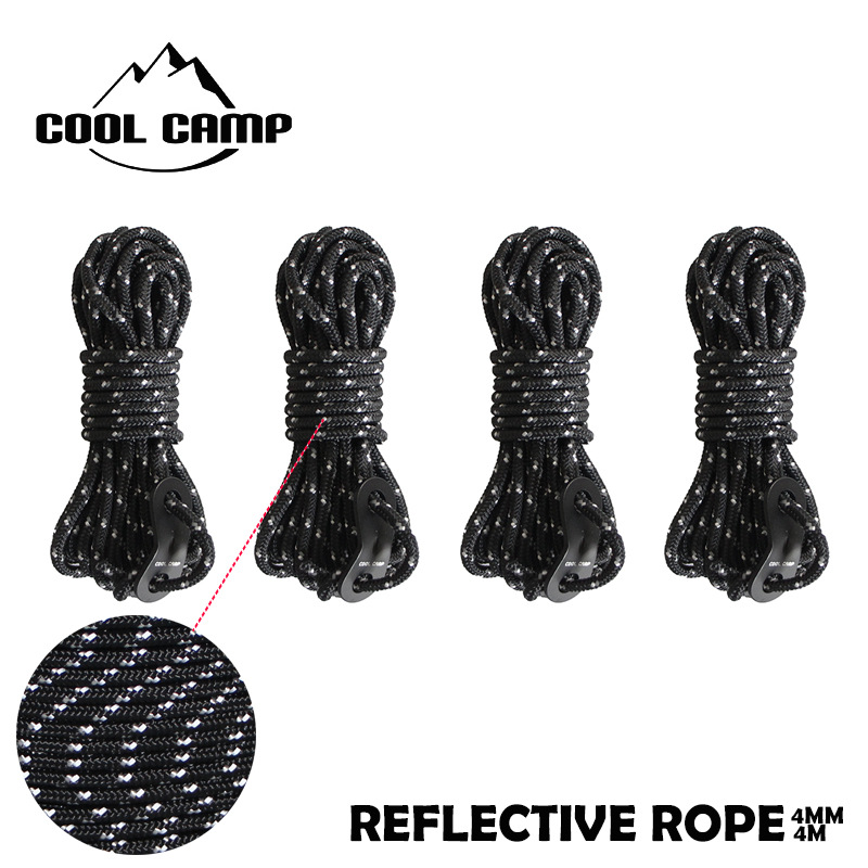COOLCAMP tali berkemah luar ruangan, tali kanopi reflektif titik hitam putih, tali serut gesper dapat disesuaikan