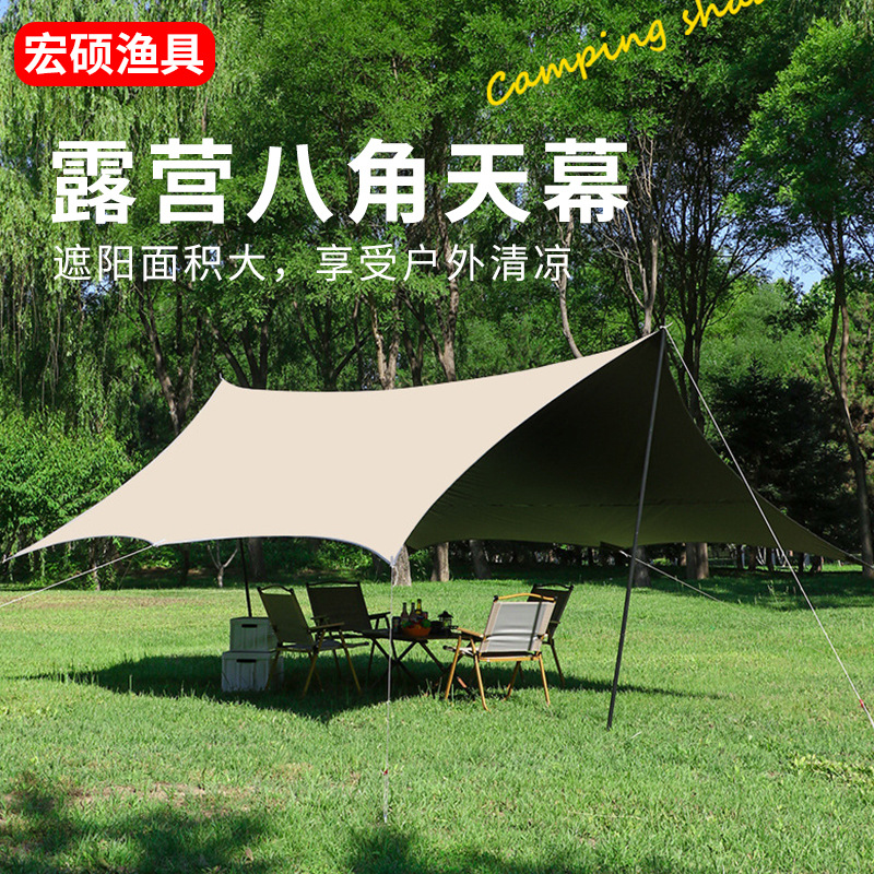 Berkemah Delapan Sudut Langit Tirai Gelatin Hitam Tirai Matahari Menutupi Hujan Berkemah Tirai Langit Tenda Kerai Matahari Gudang Musim Panas