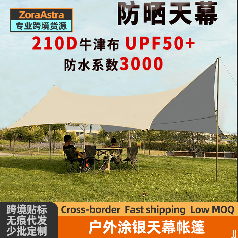Lem Hitam Tirai Langit Pelindung Terik Matahari Peralatan Berkemah Luar Ruangan Tenda Pantai Tenda Tahan Hujan Tenda Perak Tirai Piknik Portabel Tirai Langit