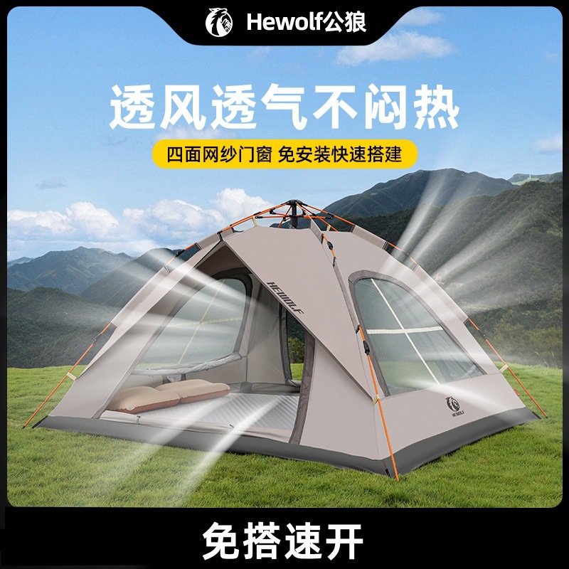 Pria Wolf kanopi lipat portabel berkemah, tenda tabir surya tahan hujan lapisan ganda tebal buka cepat otomatis berkemah luar ruangan