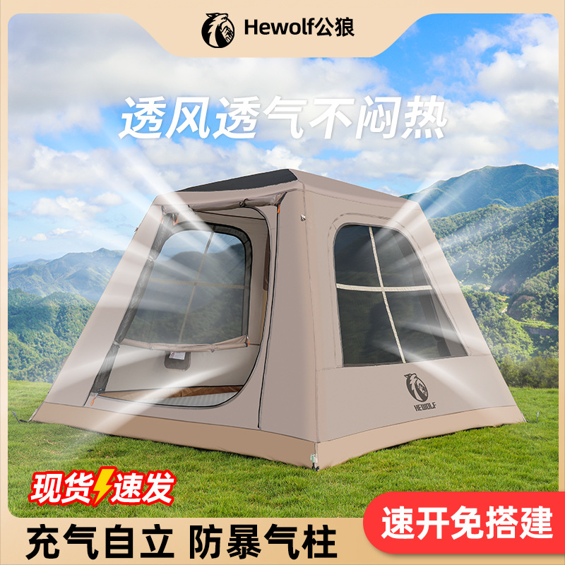 Pasokan lintas batas publik serigala luar ruangan tenda tiup otomatis bebas angin tahan hujan tenda perjalanan 3-5 orang