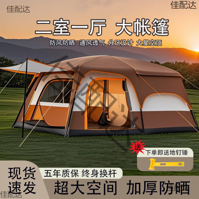 Tenda Luar Ruangan Dua Kamar dan Satu Ruang Berkemah Super Besar Lapisan Ganda Tebal Anti Hujan Lipat Portabel Set Lengkap Peralatan Berkemah Mewah