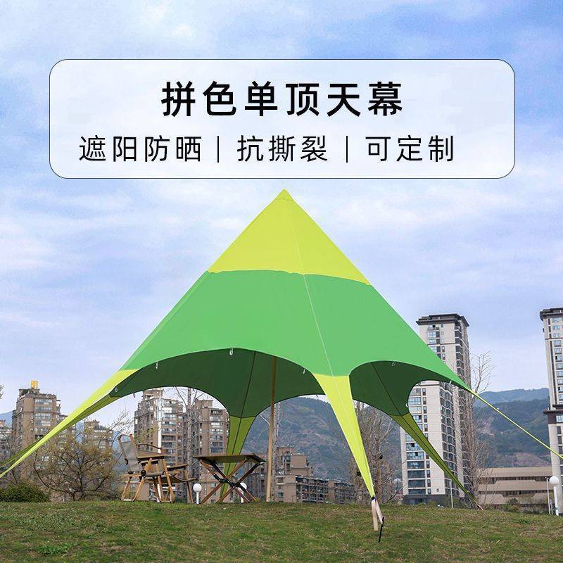 Tenda pelangi heksagonal luar ruangan tenda jaring merah tenda kemah musim gugur perlindungan matahari tunggal gudang bintang segitiga luar ruangan