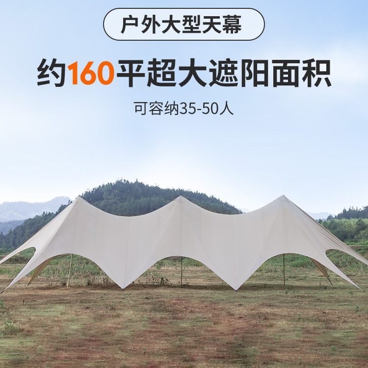 Tenda kanopi besar empat puncak ganda tunggal, kemah gunung Wanzhong luar ruangan, kanopi Lotus tahan matahari tahan matahari