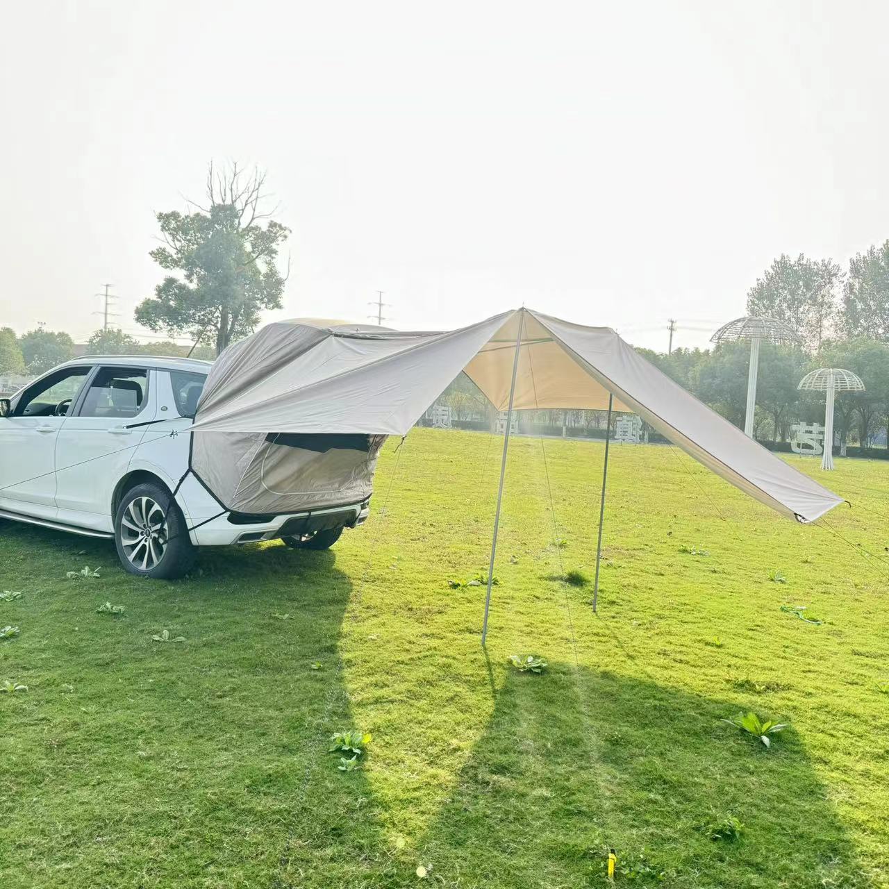 Tenda ekstensi barbekyu, perjalanan barbecue IU SUV luar ruangan berkendara sendiri tenda ekstensi ekor mobil penahan matahari tahan hujan kanopi bagasi perjalanan