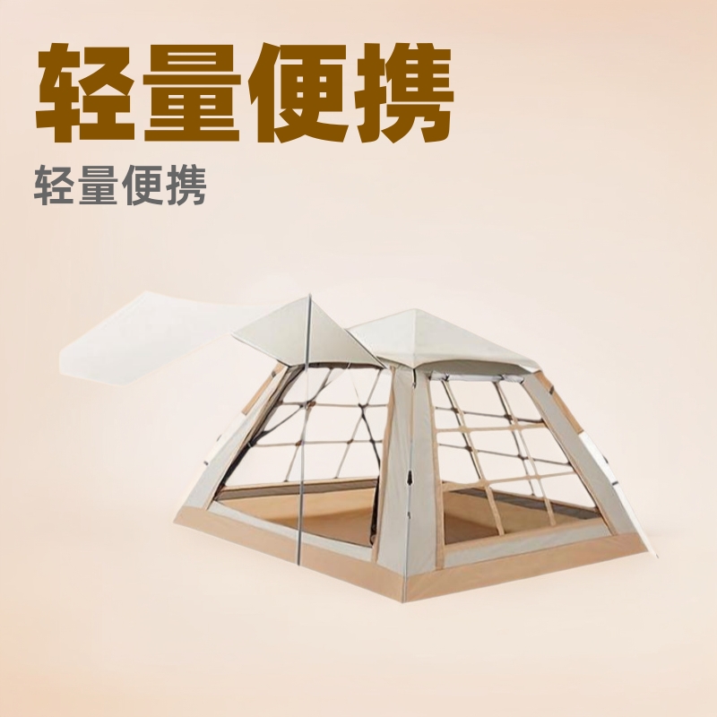 Tenda luar ruangan heksagonal berkemah, peralatan serbaguna tahan hujan ruang besar otomatis sederhana portabel