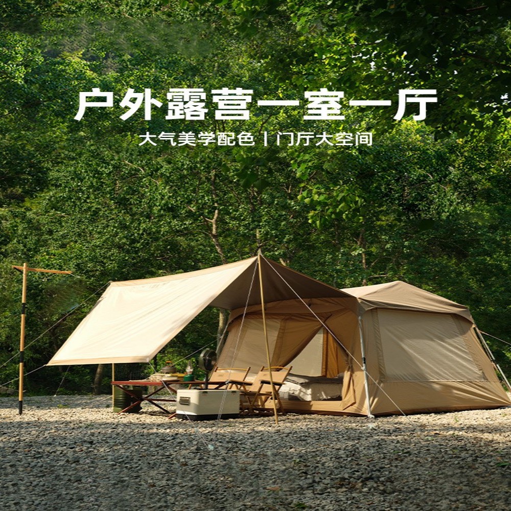 Tenda Luar Ruangan Portabel Dilipat Tabir Surya Ringan Satu Kamar, Satu Ruang Bermain Peralatan Berkemah Liar