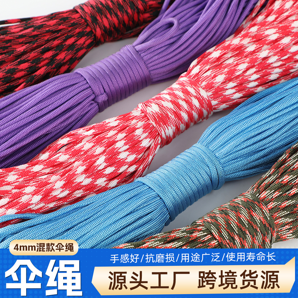 Tujuh Inti Tali Payung Luar Ruangan Multifungsi Mendaki Gunung Tali Keselamatan Penyelamat Penarik 4mm Polyester Rajutan Pabrik Grosir