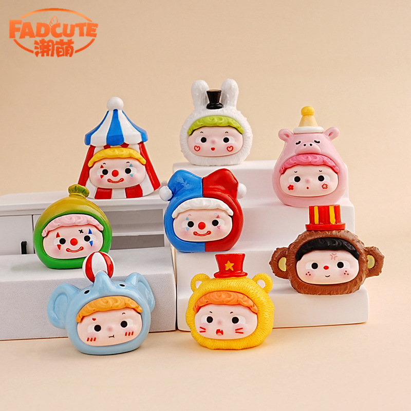 Mainan Dekorasi Pasangan Sirkus Ornamen Kecil Resin Figur Tangan Kotak Buta Trendi Tas Buta Ornamen Lucu