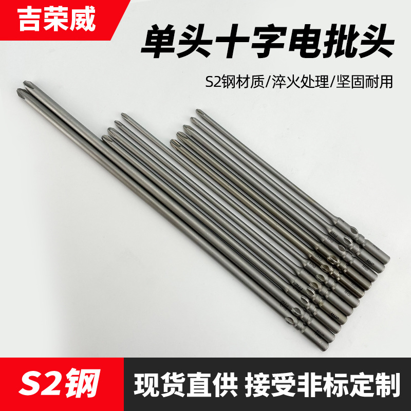 Jirongwei JRW obeng listrik lintas, 801 baja S2 impor keras 5mm kepala obeng diperpanjang 4C batang batch obeng