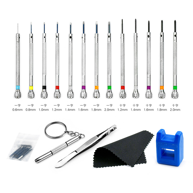 Alat perbaikan jam tangan 0.6-2.0, obeng silang + 13 kepala cadangan + setelan obeng mini