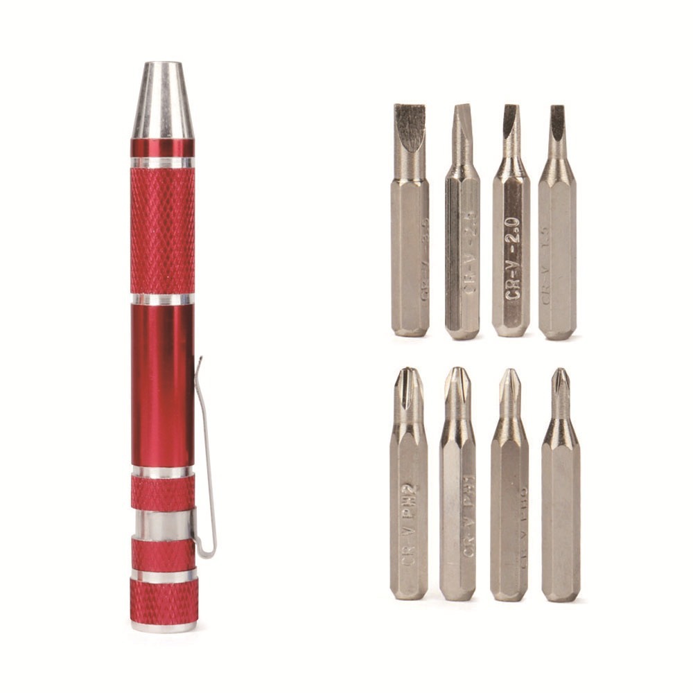 Tas Perbaikan Alat Tangan Portabel 8 in 1 Mini Aluminium Presisi Pen Obeng Set Obeng Multiple