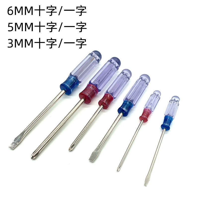 Obeng salib transparan, gagang kristal, peralatan rumah tangga yang cocok mainan hadiah 3MM obeng kecil