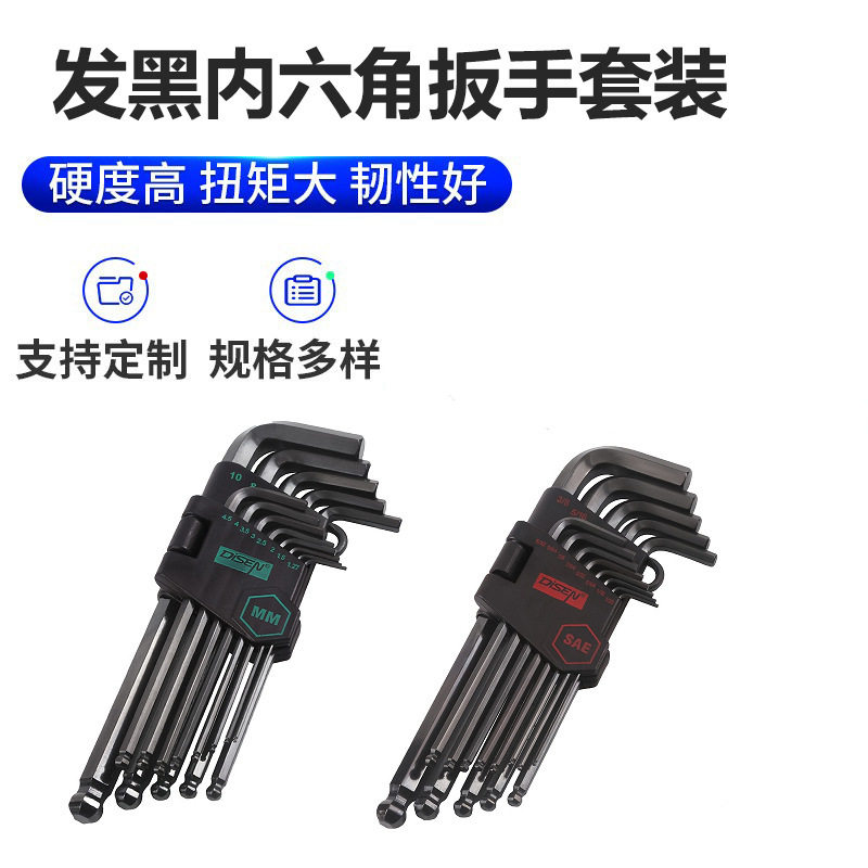 45 # kunci pas kepala datar sendok heksagonal baja berlapis nikel/hitam M0.9-M10 kunci pas heksagonal bentuk L kekuatan tinggi