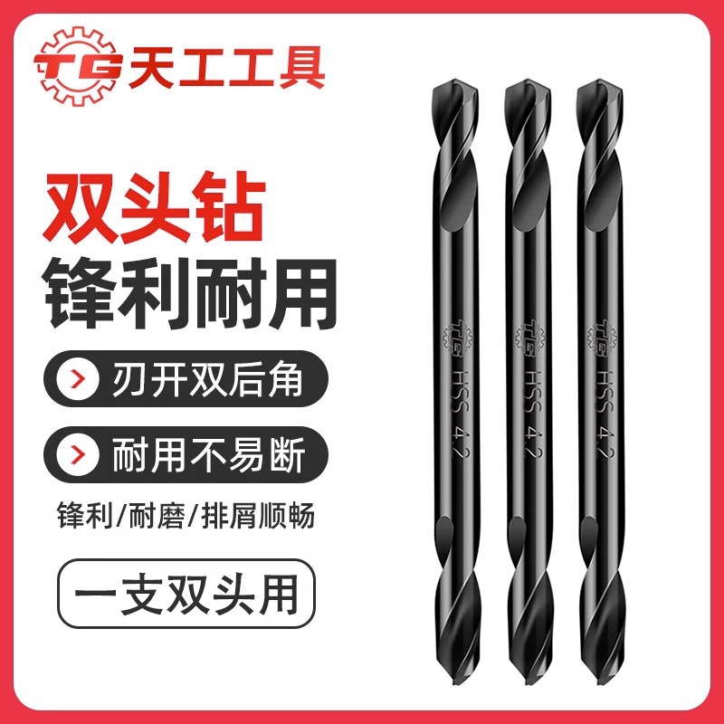 Tiangong mata bor putar kepala ganda, bor tangan super keras baja tahan karat 6542, mata bor pisau ganda kecepatan tinggi