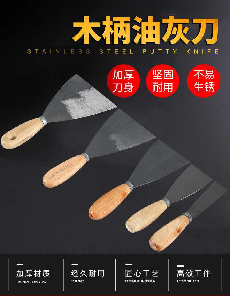 Pisau dempul penebal energi multi-kinetik pegangan kayu plester batch abu iklan pembersih sekop kecil pisau bersama mengisi dempul pengikis