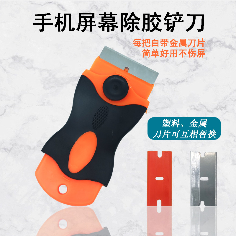 Alat pembersih lem jendela, sekop plastik, kaca, alat penghilang lem, pisau dempul