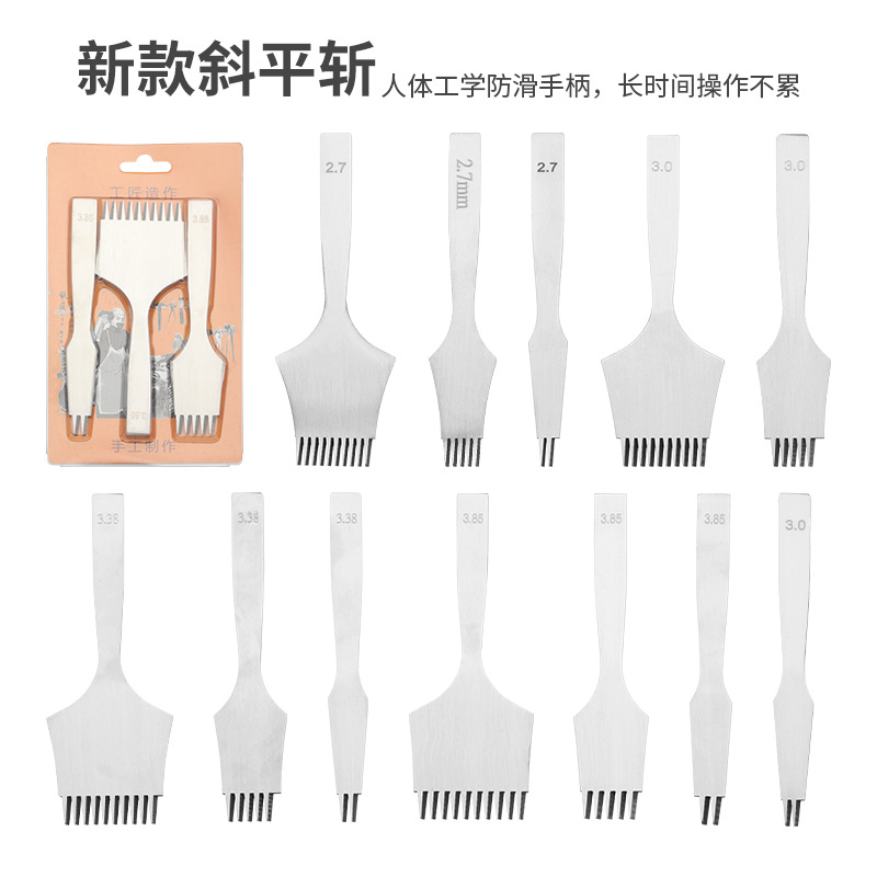 Alat pahat kulit buatan tangan diy potongan Eropa miring potong datar hukum umum pahat jarak 3.38/3.85/3.0/2.7
