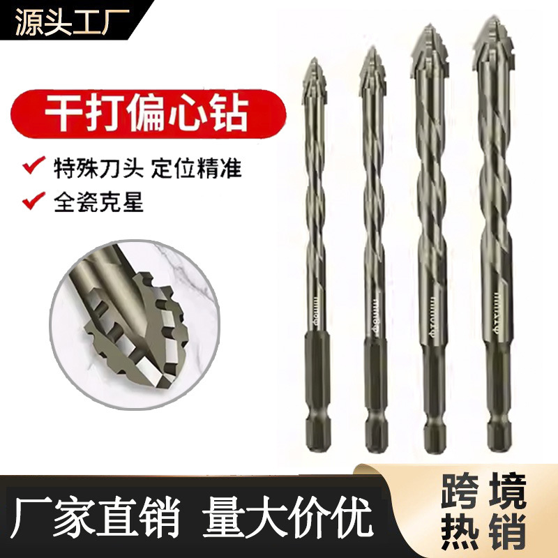 Bor eksentrik berbilah empat, bor listrik khusus untuk kaca beton berlubang, bor kering dengan kekerasan super tinggi
