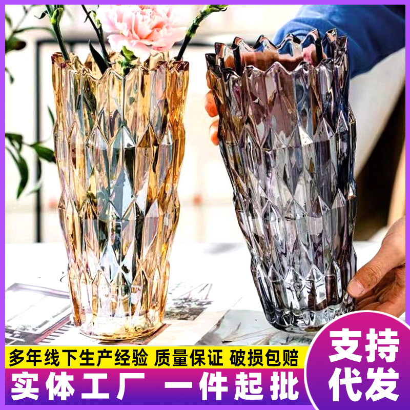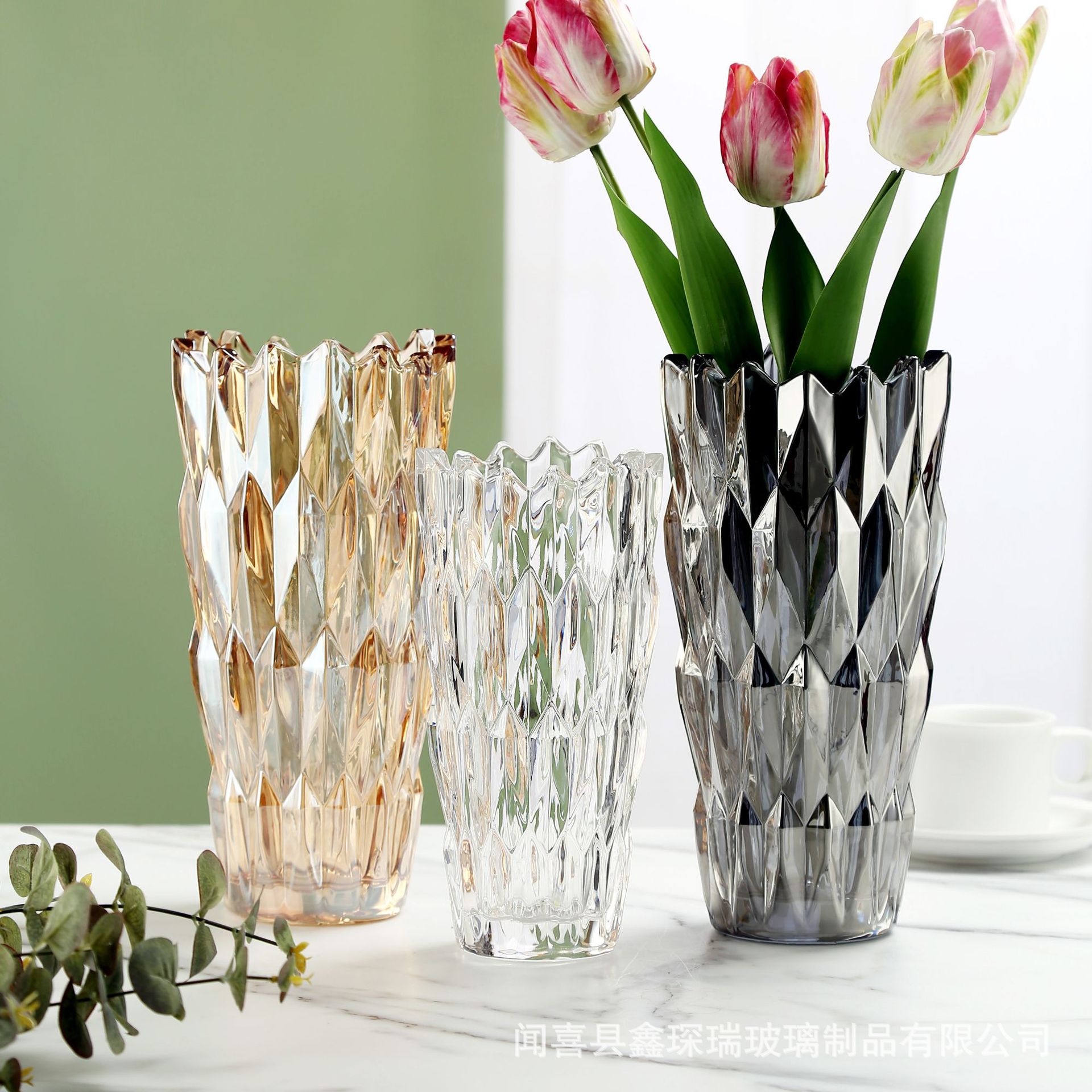 Vas kaca kristal tebal sederhana, mulut bergigi penuh hiasan bunga parfum ruang tamu meja makan rumah ins ornamen