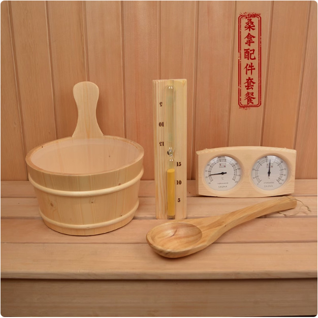 SAWO alat sauna/ruang sauna/aksesoris ruang sauna kayu barel sendok kayu higrometer jam pasir
