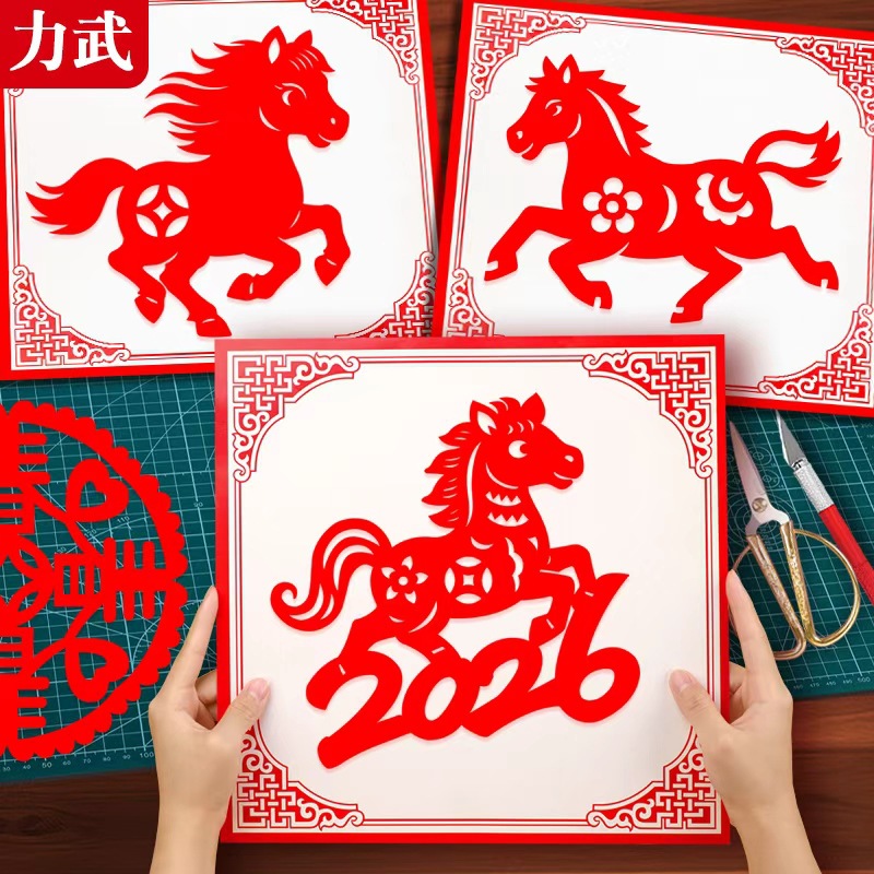 Dragon Spring Festival potongan kertas 2024 baru sederhana fu karakter stiker Tahun Baru potongan kertas Tahun Baru kaca jendela bunga stiker statis Musim Semi Festival
