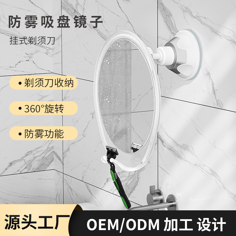 Cermin Rias Anti Kabut Penghisap Cawan Penyimpanan Alat Cukur Casing Penghisap Bulat Tanpa Lubang Dinding Cermin Rias Kecil Kamar Mandi