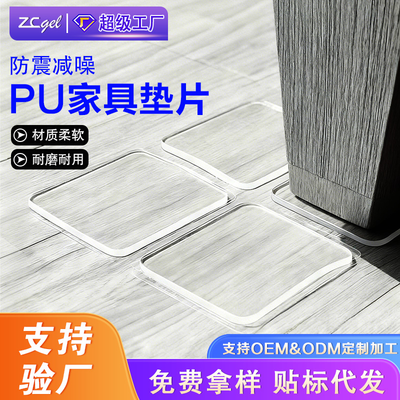 Bantalan karet PU lembut persegi transparan anti-selip, bantalan perekat diri anti-selip, bantalan peredam goncangan, bantalan penyegel viskositas tinggi