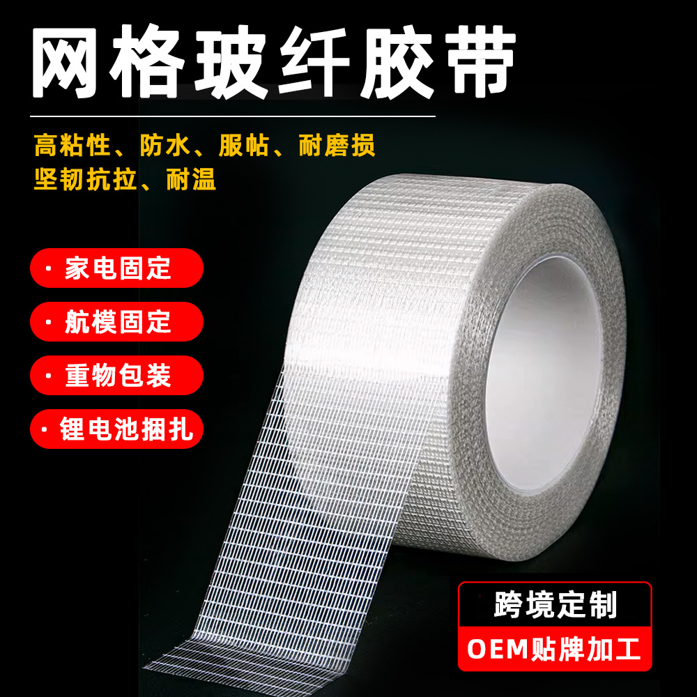 Pita Serat Kaca Grid Kustom Kelas Industri Tetap Super Kuat Viskositas Anti Robek Kemasan Tahan Tarik Serat Kaca Tahan Air