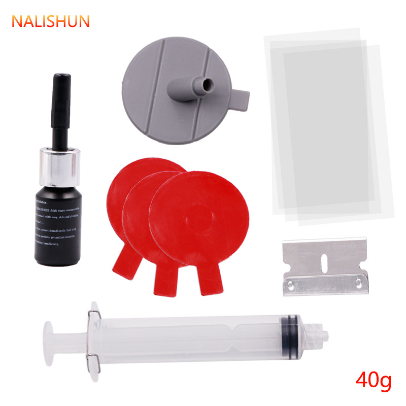 Perbaikan kaca mobil, alat lem agen pengurang solusi perbaikan retak gores jendela depan