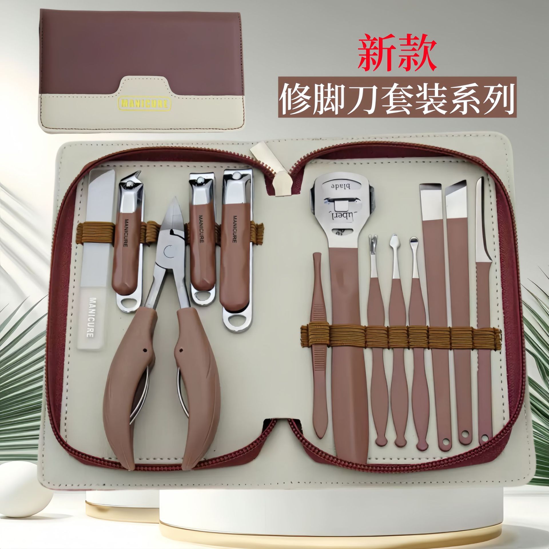 Gunting kuku 16 buah alat setelan grosir gunting hidung elang gunting rambut hidung penutup kulit pu alat seni kuku setelan