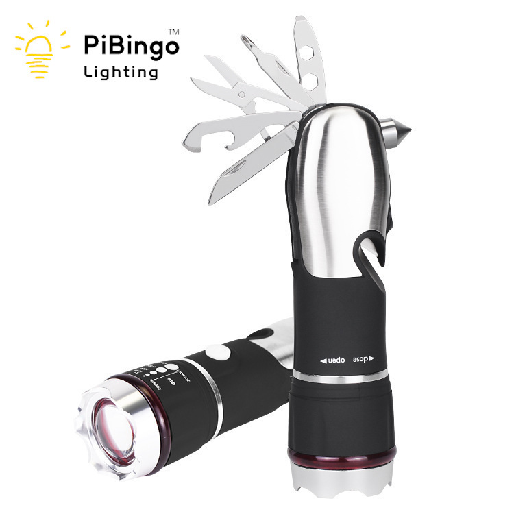 Alat Multifungsi Kombinasi Lintas Negara 2024 Palu Pengaman Senter Fokus Teleskopik Kepala Aluminium Lampu Inspeksi LED