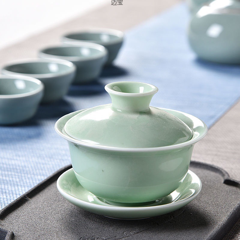 Penutup Mangkuk Kungfu Mangkuk Penutup Mangkuk Besar Kecil Keramik Kungfu Set Teh Peralatan Seduh Teh Tangan Lukisan Pastel Tiga Cangkir Sancai Mangkuk Grosir